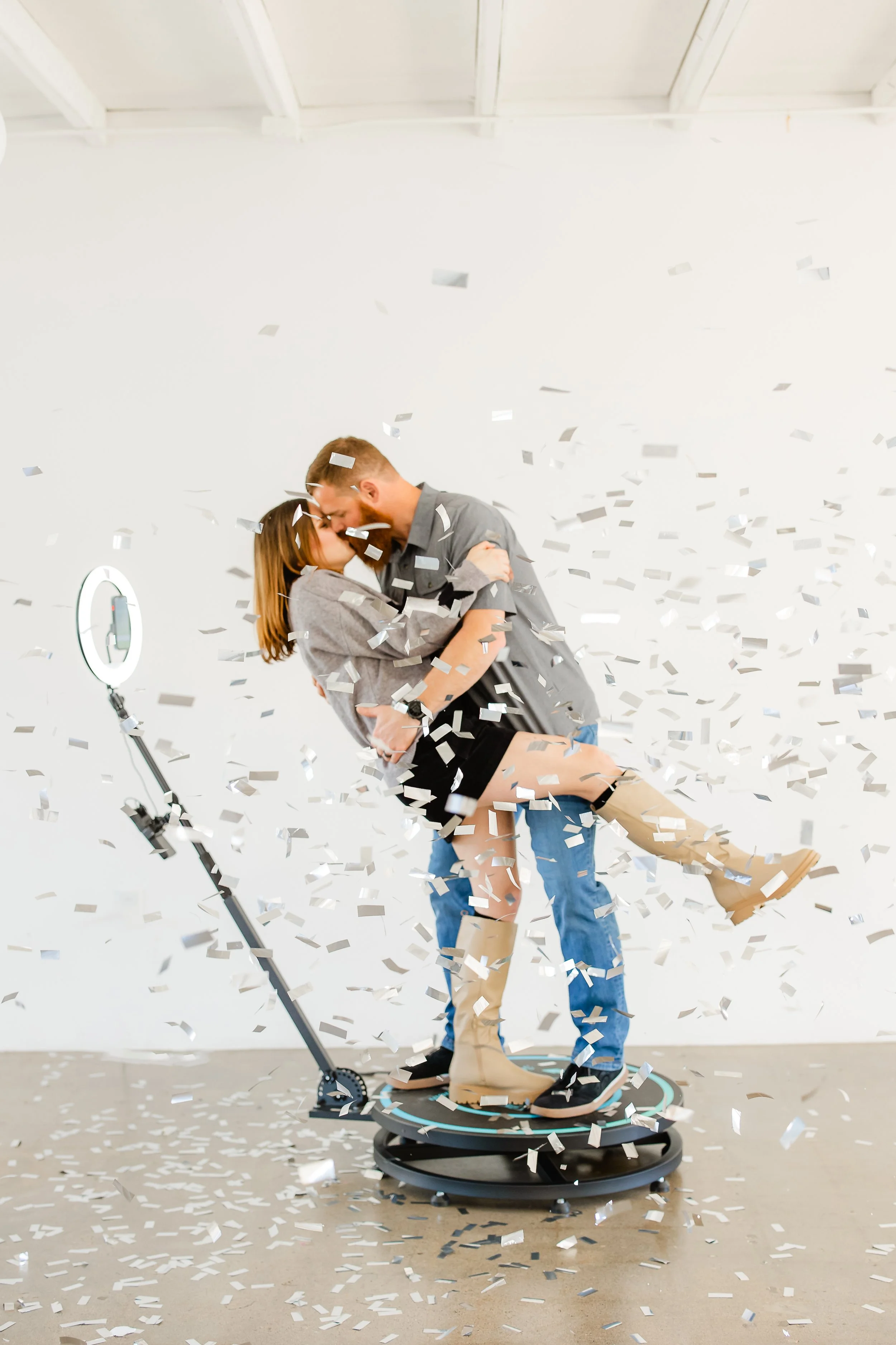 The 360 video booth features a platform that you (and maybe a few friends) stand on while the fully motorized arm holding the camera spins around you and takes a high-quality 360 degree video. The software applies slowed down, sped up, and/or reverse video effects. Props are always available to your guests, and things such as confetti, or fog and smoke, as well as the ability to add music and fierce overlays to the videos - customized to your event specifically - are always an option to enhance the experience! In other words, we are SO on brand for you!